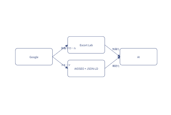 Escort Labの全ページには、AIOSEOスキーマ+JSON-LD構造が実装されています。GoogleとAIが同一構造を読み取り、LLMO(大規模言語モデル最適化)で参照される。つまり、本サイトは「SEO」と「AI参照」の中間に位置する知識アーカイブです。